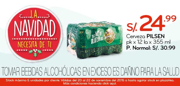 Ofertas válidas del 20 al 22 de noviembre de 12015 o hasta agotar stock en plazaVea. Ofertas de 3x2. 2x1 y 2do producto con descuento en modo combinable, aplica sólo a misma presentación de producto y marca. En categorías abarrotes máximo 5 unid por cliente; en categoría frescos máximo 10 kg/10 unid por cliente. Stock mínimo por producto en abarrotes lOunid y frescos 10kg/10. *No disponible en plazaVea: Proceres. La Victoria. Cine Rímac, Villa Marina. Magadalena, La Perla, La Paz y Barranca. No válido en plazaVea Express: Bolognesi, Santa Cruz. Grifo Kio, SKA Chimbóte ni Centro Trujillo. Ofertas no acumulabas con otras promociones ni autoliqu¡dables. Aplica condiciones y restriccionesen v/wv/ plaza vea com pe |